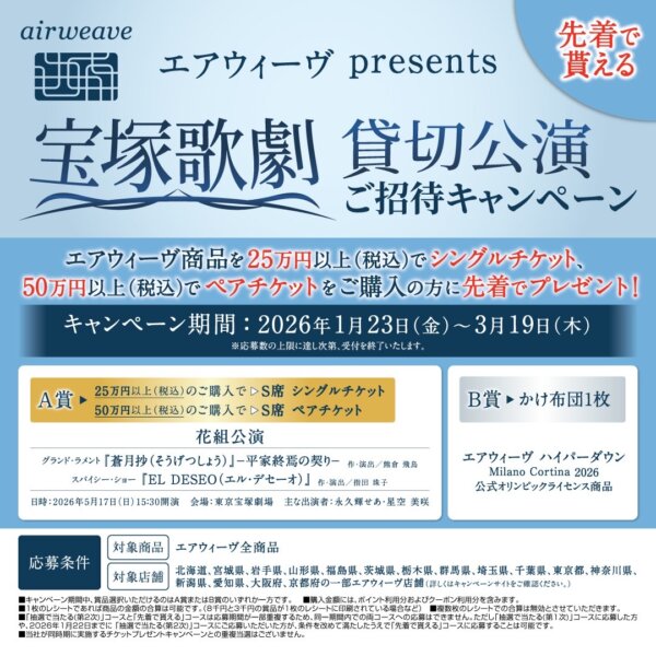 【エアウィーヴ】宝塚歌劇団貸切公演ご招待キャンペーン