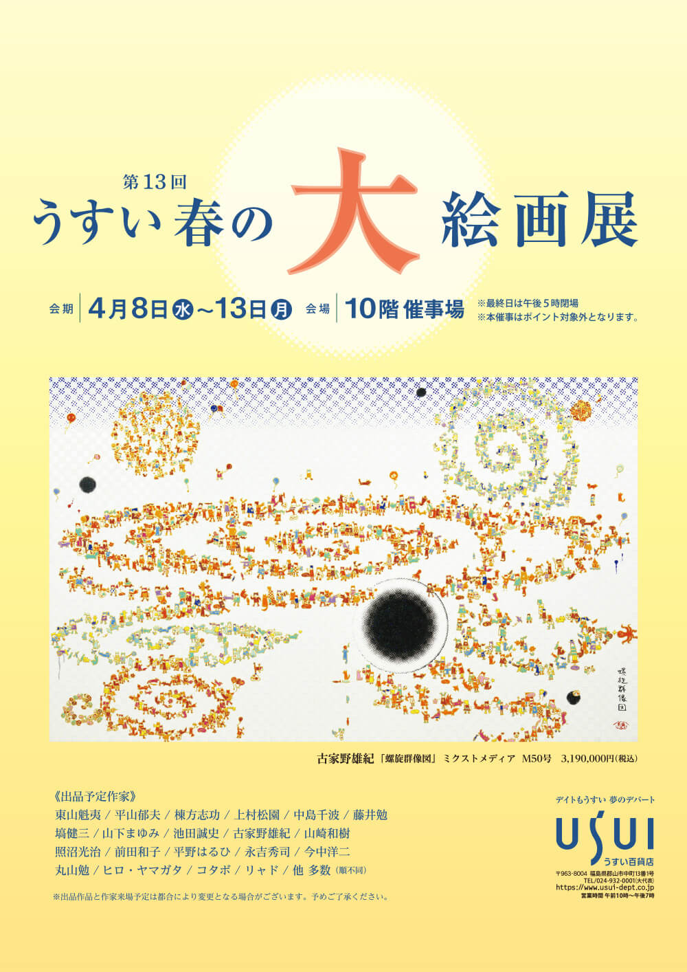 折込チラシ・新聞広告 うすいのお芋マーケット HOKUHOKU [PDF:5.6MB] 第13回 うすい春の大絵画展 [PDF:1.9MB] ※PDFをご覧になる際は、Adobe® Reader® が必要となります。 【携帯電話をご利用のお客様へ】 ※携帯電話からはダウンロードできません。 ※別途通信料がかかります。 TVCM