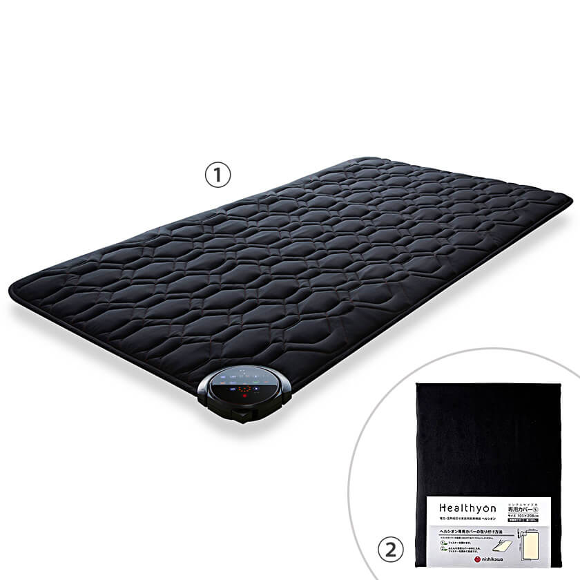 - シングルサイズ(100㎝×195㎝)、側地:ポリエステル100%、詰めもの:上下層 ポリエステル60% 毛40% ウレタンフォーム、中層:発熱体シート