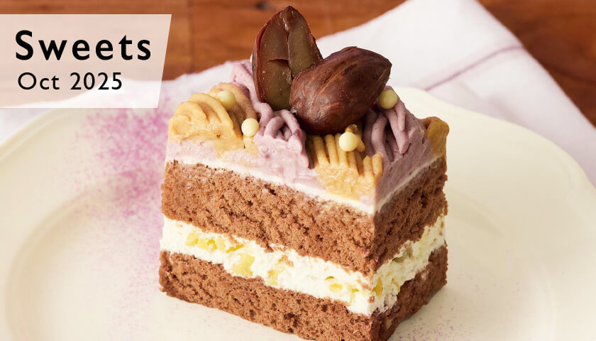 チョコスポンジにディプロマットクリームと栗をサンドし、イタリア栗のマロンペーストを使用したコクのあるマロンクリームと、優しい甘さのむらさき芋クリームを絞って仕上げました。