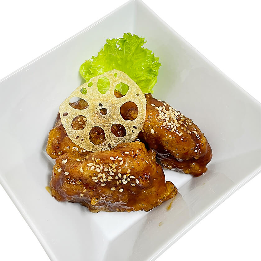 柔らかくてジューシーな竜田揚げを米黒酢と本醸造の黒酢ソースで仕上げました。