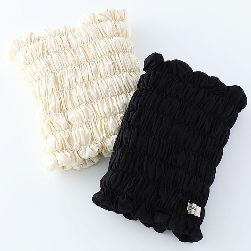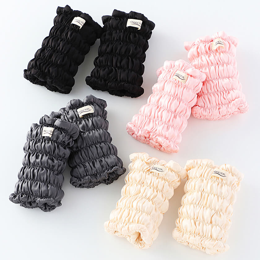 - ベージュ・ブラック・グレー ・ライトピンク、丈16㎝、生地:シルク100%、中わた:天然鉱物パウダー加工わた(綿)、原産国:日本