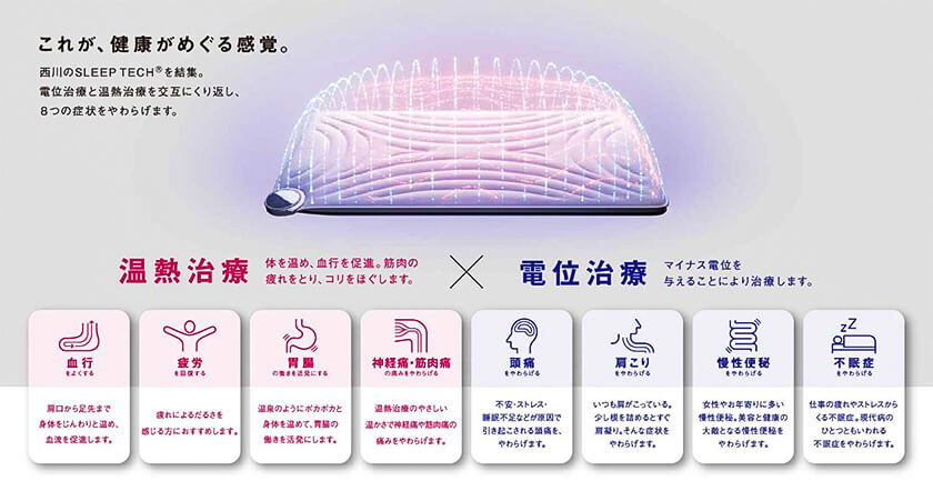 疲れや肩コリ、不眠症などの気になる症状を緩和します。