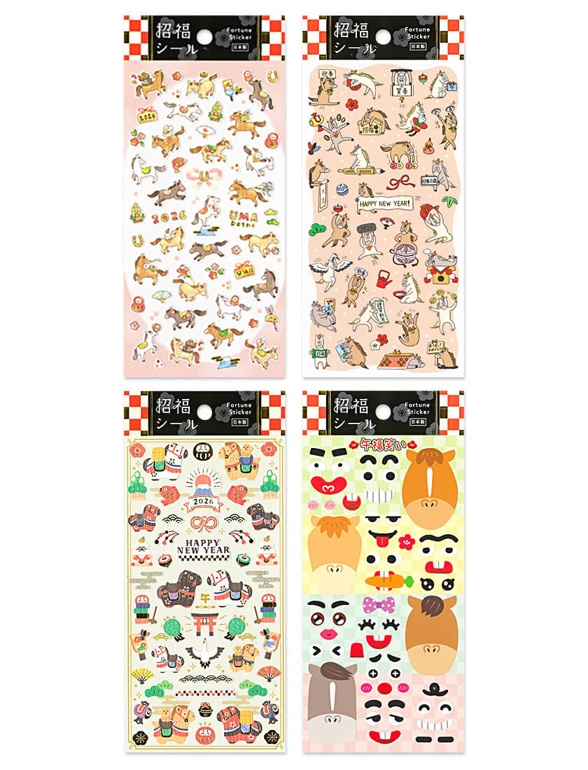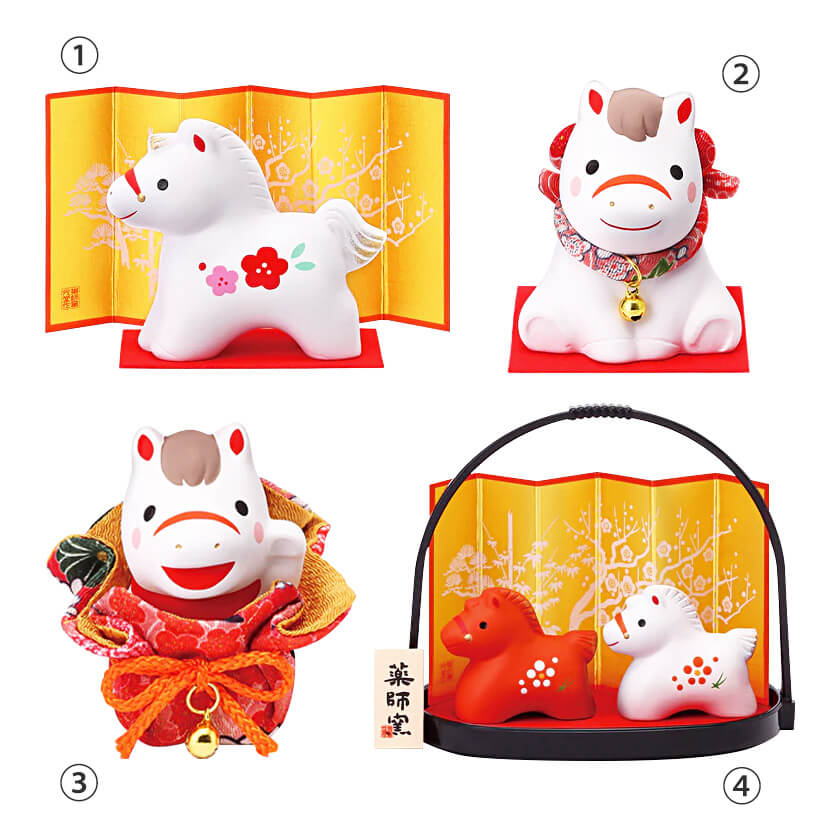 ウマをモチーフにしたものはもちろん、縁起物、キャラクターものなどよりどりみどり。