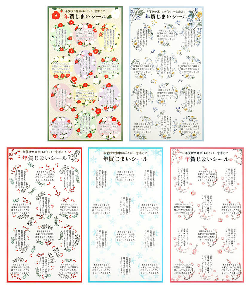 年賀状終いをされる方に向けた、年賀状終いのハガキや年賀状に添えるシールも扱っております。