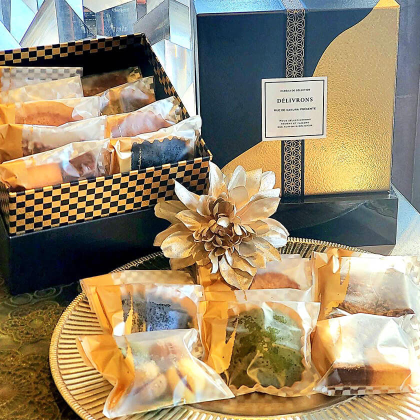 ブラックとゴールドのお重箱仕様の箱に、イタリア伝統菓子や、通常販売していない限定の焼菓子を詰め合わせました。