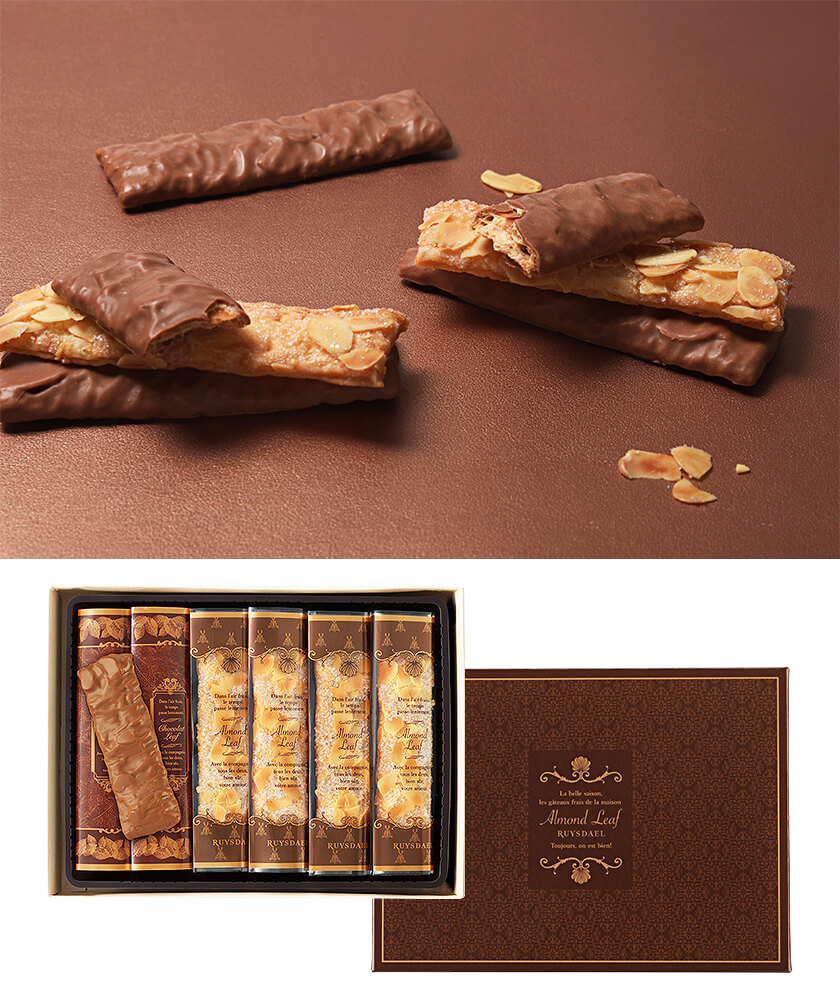 フレッシュバターをたっぷり折り込んだ生地にスライスアーモンドとシュガーをまぶして焼き上げた「アマンドリーフ」とアマンドリーフをミルクチョコレートでコーティングした「ショコラリーフ」の冬期限定の詰め合わせです。