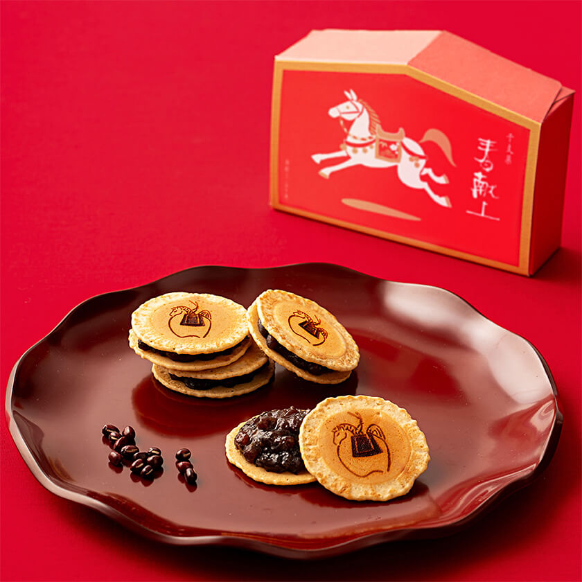風味豊かな玉子せんべいに小倉餡を挟みました。