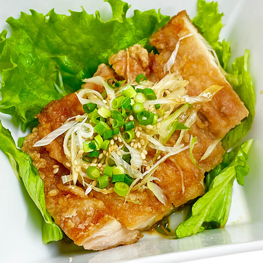 鶏もも肉を竜田揚げにして、コクと酸味の油淋ソースで仕上げました。