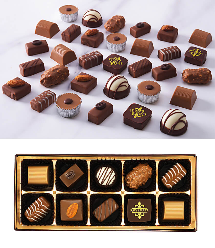フルーツやナッツを使用したものや、シンプルなミルクチョコレートなどバラエティ豊かに詰め合わせました。