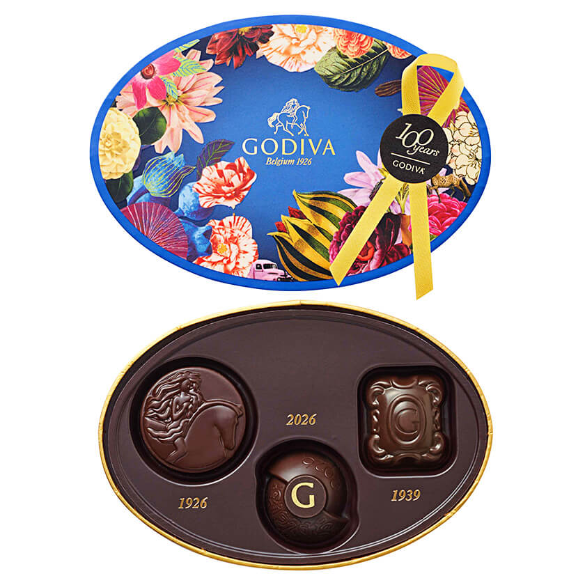 ゴディバ100周年。ベルギー王室御用達を拝命し、伝統の継承と共に革新を重ねてきた100年のアーカイブショコラコレクションから、厳選したダークチョコレートを、シックで華麗なパッケージに詰め合わせました。