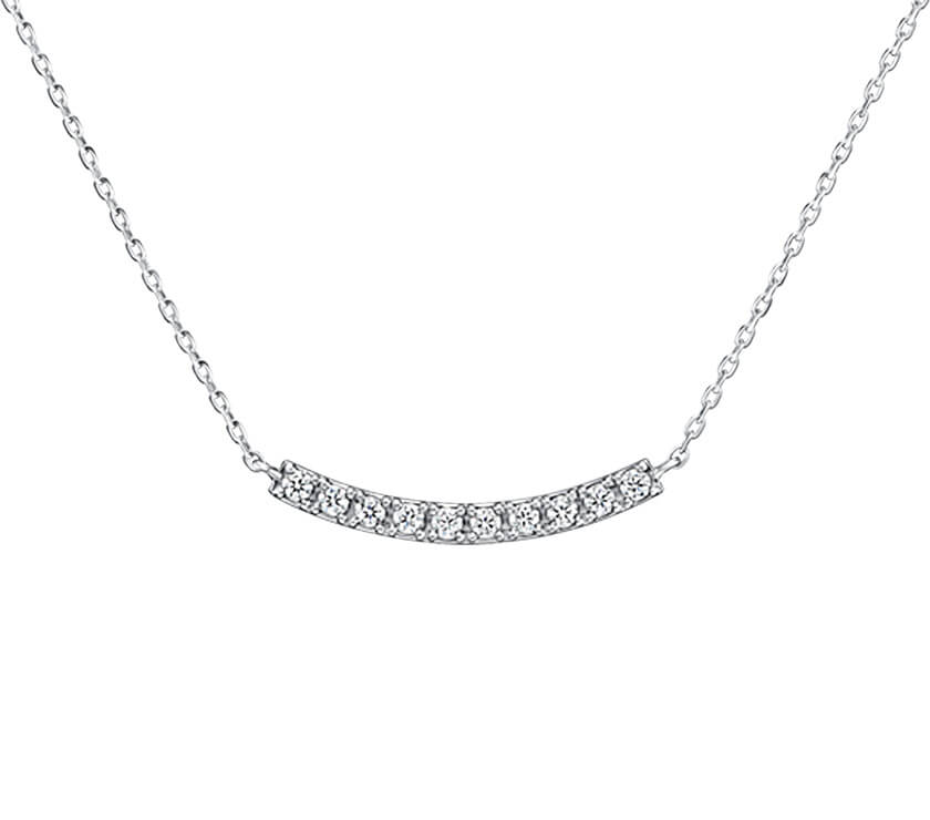 光の瞬きをまとうチェーンに、粒ぞろいの10石のダイヤモンドが美しいアーチを描いて並ぶネックレス。