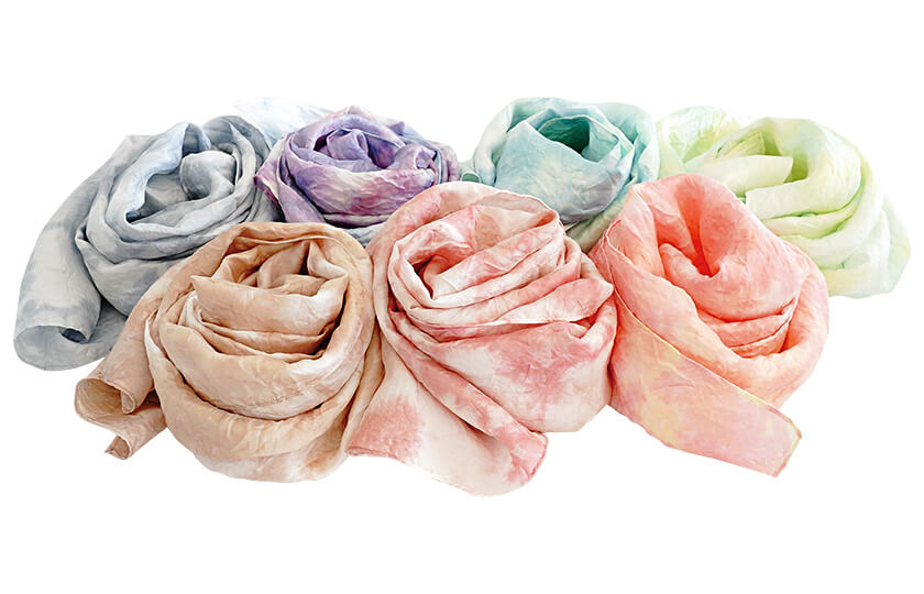 川俣町の特産品、「川俣シルク」の春らしいストール。
