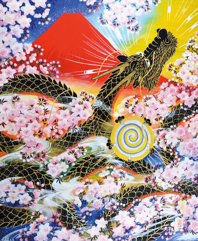 - 赤富士に飛龍(ブラック・桜)