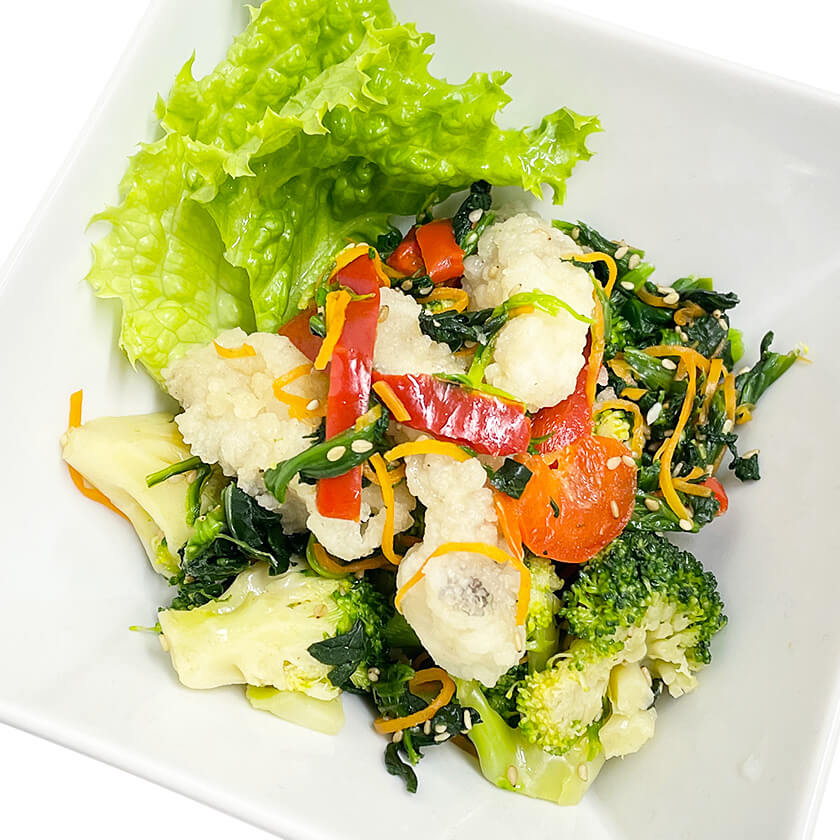 北海道産の真鱈を素揚げして、野菜と白だしで和えました。