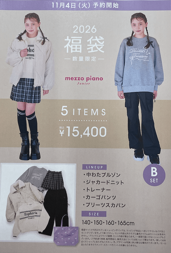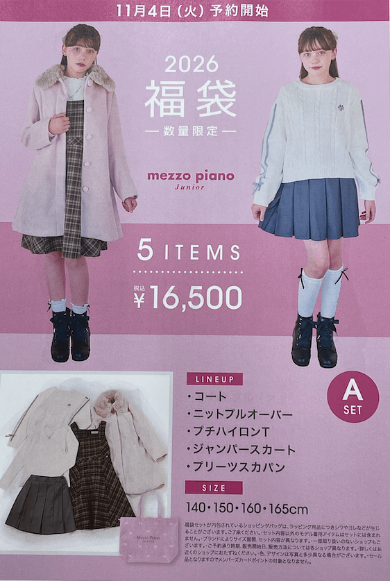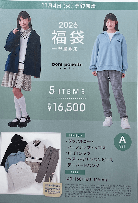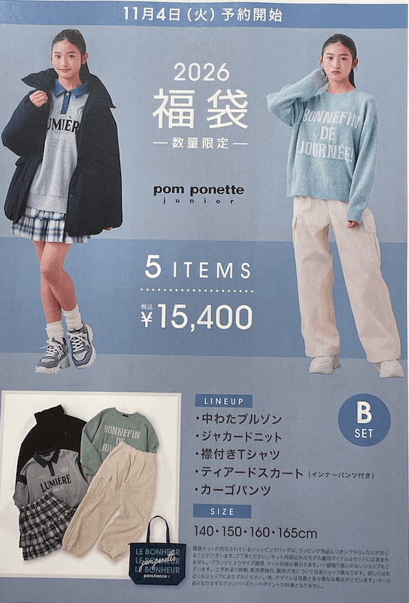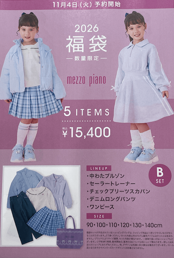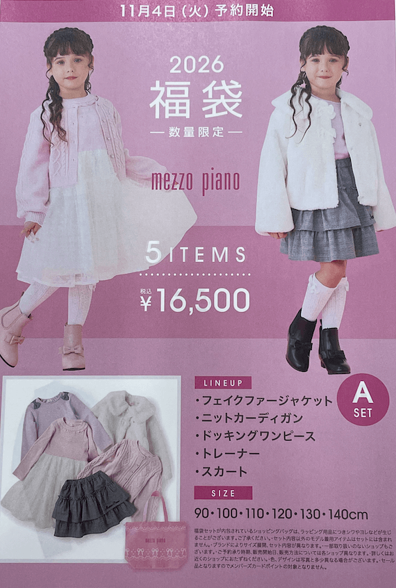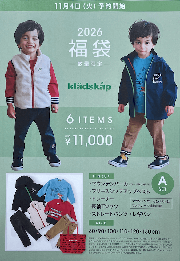 商品名 ◆〈予告〉ナルミヤブランド福袋ご予約🛍️◆ 11月4日(火)より、ナルミヤブランド2026福袋のご予約承りをスタートいたします! 〈販売ブランド〉 ●クレードスコープ ●ポンポネットジュニア ●メゾピアノ ●メゾピアノジュニア ※各サイズ、数に限りがございます。 詳しくは販売員までお問合せください。 ■11月4日(火)〜 ■6階 ナルミヤショップ