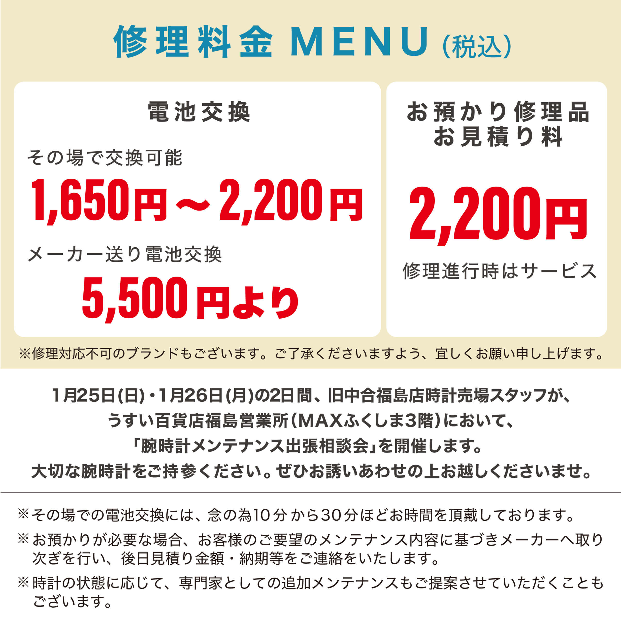 お問合せ:024-953-4420(うすい百貨店 4階 時計売場直通)