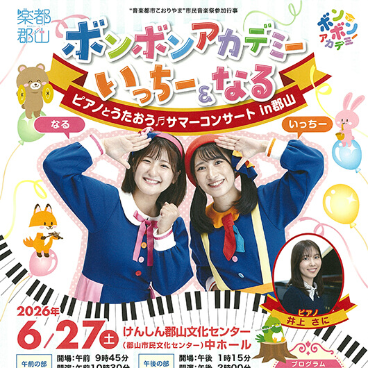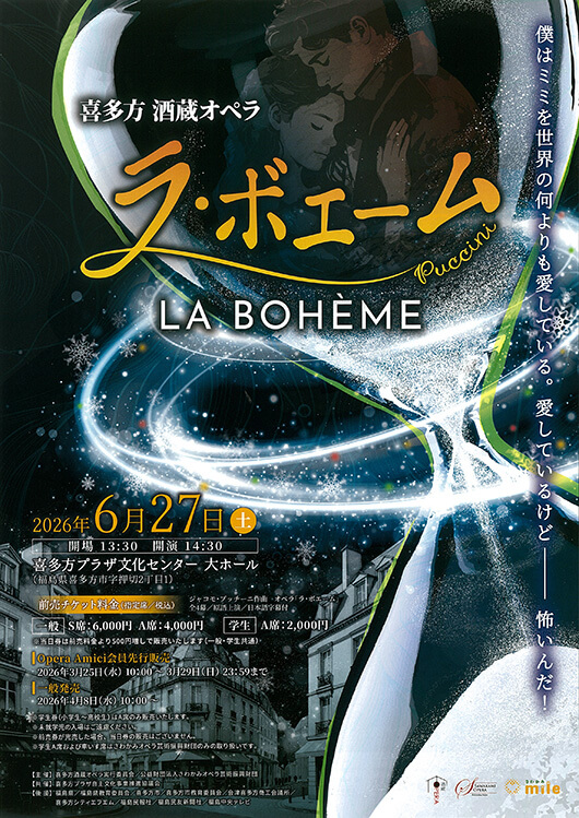 公演名 喜多方 酒蔵オペラ「ラ・ボエーム」 会期 2026.06.27(土) 開場 13:30 開演 14:30 会場 喜多方プラザ文化センター 大ホール 座種料金 全席指定 S席 6,000円 A席 4,000円 その他・備考 ※未就学児入場不可 プレイガイド 2026.07.01(水) 開場 16:00 試合開始 18:00 2026プロ野球パーソナルパシフィック・リーグ公式戦 東北楽天ゴールデンイーグルス東北シリーズ supported by 大東建託 福島日産フクニチャージナイター 東北楽天ゴールデンイーグルスVS千葉ロッテマリーンズ 2026.04.18(土)〜2026.06.21(日) 北斎・広重 大浮世絵展〜二代巨匠!夢の競演〜 2026.06.27(土) 〈午前の部〉開場 9:45 開演 10:30〈午後の部〉開場 13:15 開演 14:00 ボンボンアカデミー いっちー&なる ピアノとうたおう♫サマーコンサート in 郡山